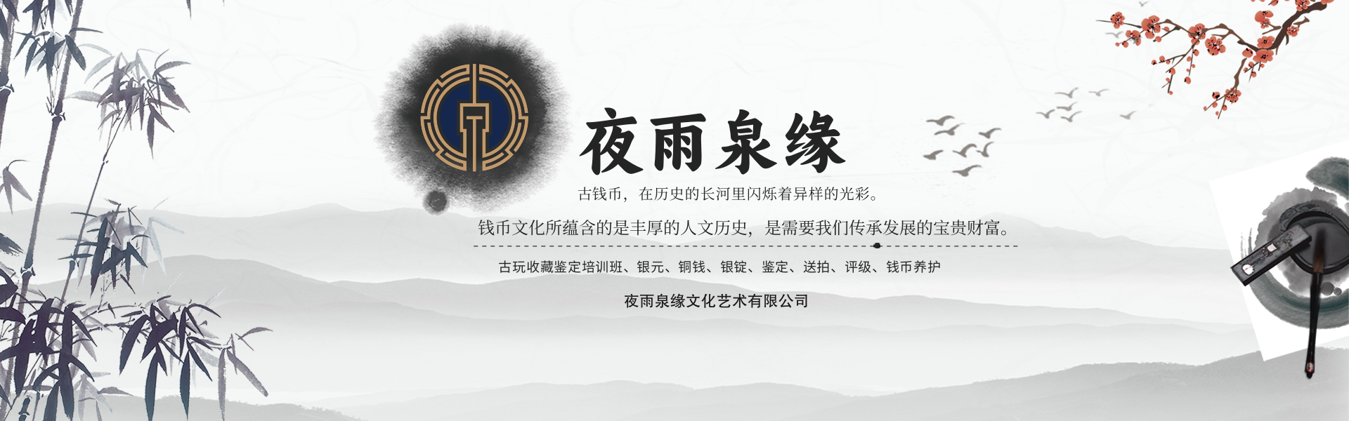夜雨泉緣文化藝術有限公司是一家從事文化藝術業為主的企業,在業內已有十多年的從業資歷,夜雨泉緣在21年正式在工商局注冊,公司以錢幣和民間文物藝術收藏品鑒定拍賣培訓為主營業務的機構。夜雨泉緣的主要業務即對銀元、銅錢、銀錠、紀念幣等進行收購,售賣與鑒定。同時公司還開設古玩收藏鑒定培訓班,幫助愛好者培訓學習。同時,夜雨泉緣以古玩收藏合作開店的形式,對合作伙伴提供線上獲... 了解更多